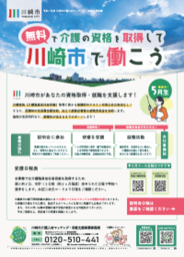 川崎市内の介護人材確保と定着に関する事業を市より受託し運営を行っております。初めて介護・福祉業界でお仕事をする方の資格取得と就労を中心に、現介護職員のスキルアップの研修、ステップアップの研修・派遣などサポートしております。求職者様の不安やお困りごとに寄り添い、ご希望に合わせてバックアップさせていただきます。事業所様の人材育成・確保だけでなくより良い職場環境づくり等の支援もさせていただきます。求職者と事業所の架け橋となり、双方のサポートに努めて参ります。