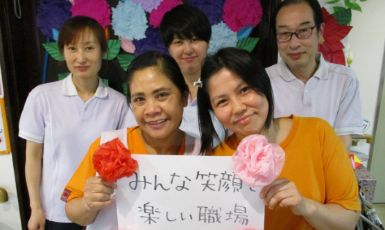 介護老人保健施設たかつ風通しの良い職場で、職員同士いいところを褒め合う (Good Jobカード) しくみがあります。 外国籍の方も多く活躍しています。