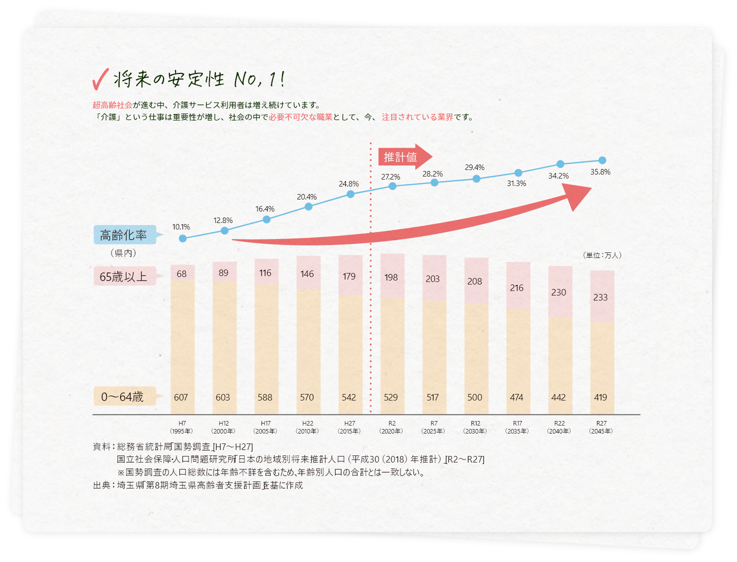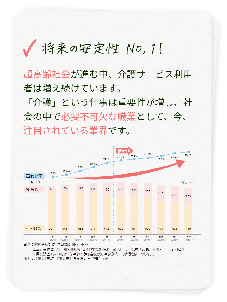 正社員、パート、日勤のみ、夜勤専門など自分の生活に合った働き方ができるのも介護の仕事の魅力です!